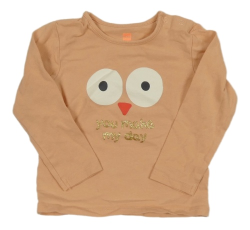 Světlekaramelové triko s očima a zobáčkem a zlatými nápisy HEMA