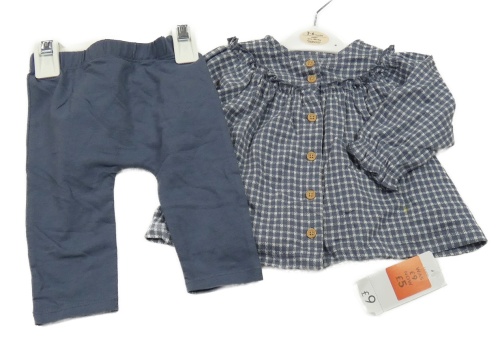 Nové - 2set - Šedomodro-bílá kostkovaná halenka + legíny George