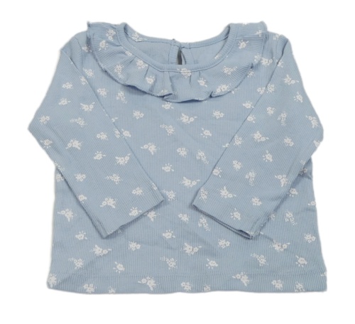 Světlemodré žebrované triko s kytičkami a volánkem Matalan