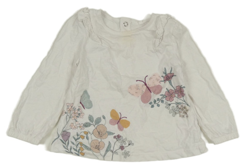 Bílé melírované triko s motýlky a kytičkami a volánky Tu
