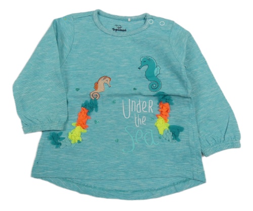 Tyrkysové melírované triko s mořskými koníky Topomini