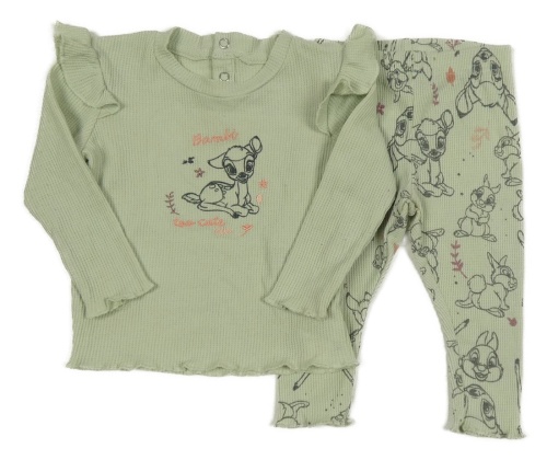 2set - Zelenkavé žebrované triko s Bambim + legíny Primark