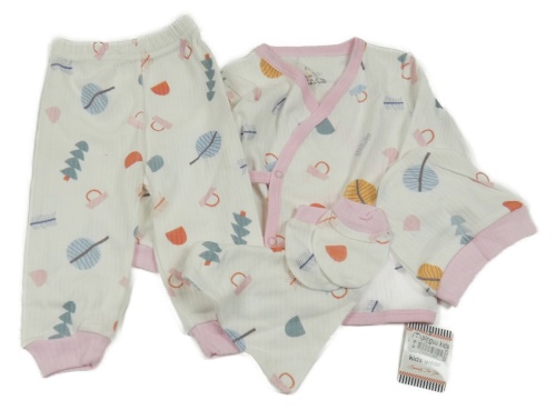 • Nové - 5set - Bílé žebrované zavinovací triko s obrázky + lehké tepláky + žebrovaná čepice + rukavičky + slinták