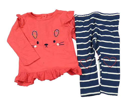 2set - Jahodové triko s králíkem + tmavomodro-bílé pruhované legíny se srdíčky St. Bernard