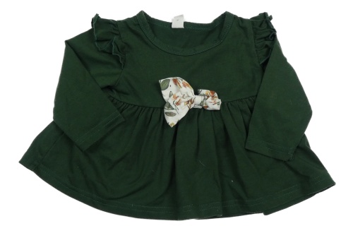 Tmavozelená tunika s mašlí a volánky Shein