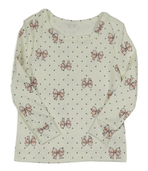 Bílé žebrované puntíkaté triko s mašlemi Shein