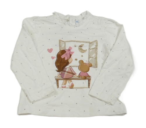 Bílé puntíkaté triko s dívkou a medvídkem Mayoral