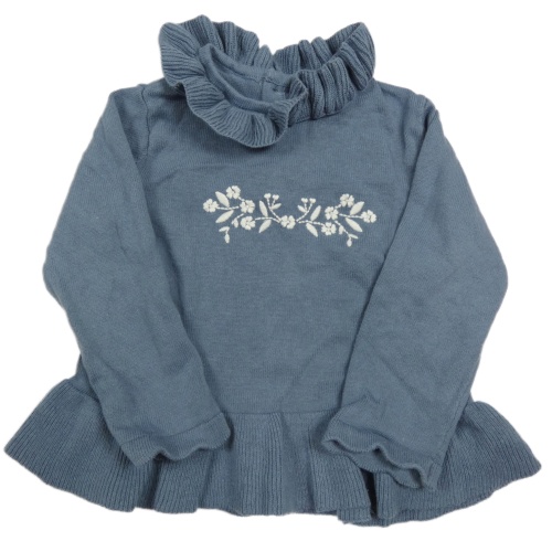 Šedomodrá pletená tunika s výšivkou a volánky Tu