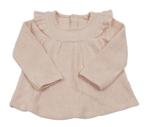 Světlerůžové žebrované úpletové triko s volánkem TU