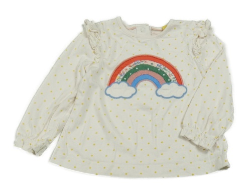 Smetanovo-žlutá puntíkatá tunika s duhou a volánky Baby Boden