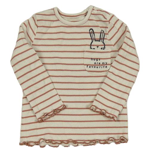 Béžovo-starorůžové pruhované žebrované triko s králíkem George