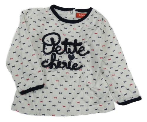 Bílo-tmavomodro-červené triko s nápisem a mašlemi