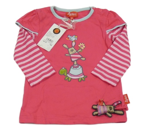 Nové - Růžové triko se zajícem a pruhovanými rukávy