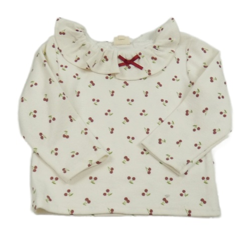 Smetanové žebrované triko s třešněmi a volánkem