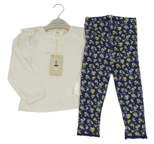 Nové - 2set - Bílé triko s límečkem + tmavomodré květované žebrované legíny Leigh Tucker