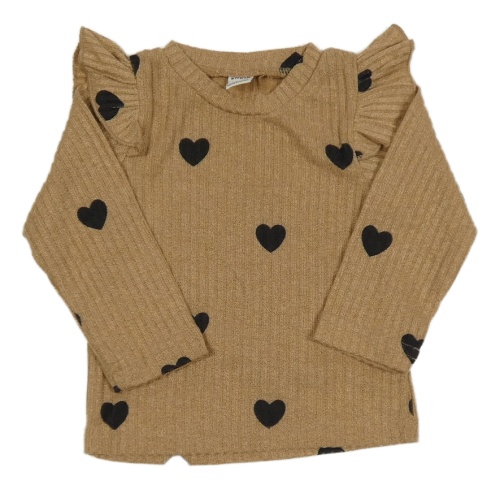 Hnědé žebrované úpletové triko se srdíčky a volánky Shein