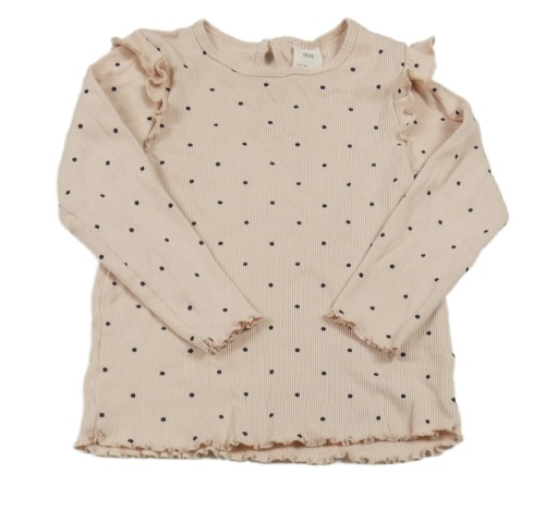 Světlerůžovo-černé puntíkaté žebrované triko s volánky H&M