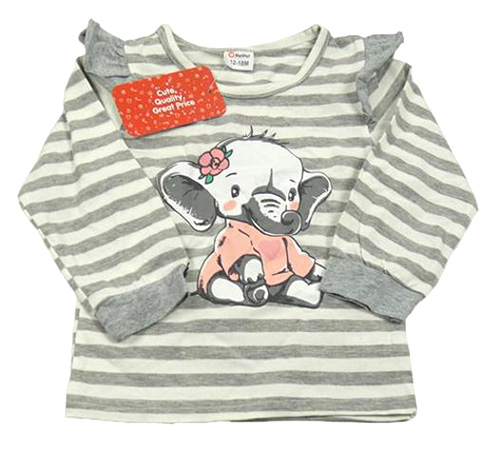 Nové - Šedo-bílé pruhované triko se slonem a volánky PatPat
