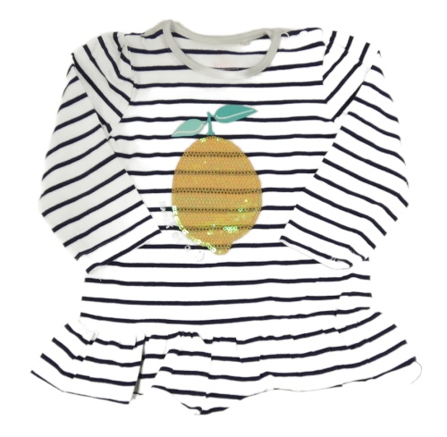 Bílo-tmavomodré pruhované triko s citrónem z flitrů Topomini