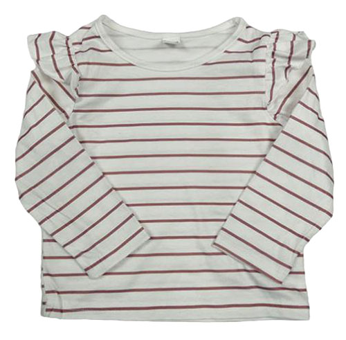 Bílo-hnědé pruhované triko s volánky Shein