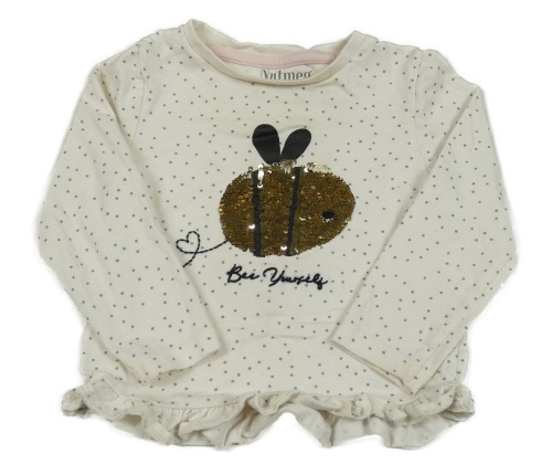 Smetanové puntíkaté triko s včelou z překlápěcích flitrů Nutmeg