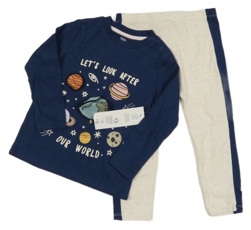 Nové - Tmavomodré triko s planetami + béžové melírované legíny s pruhem F&F