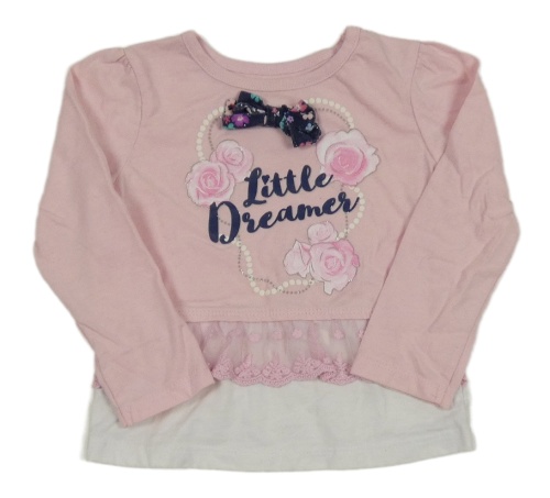 Světlerůžové triko s krajkou a růžemi a mašlí