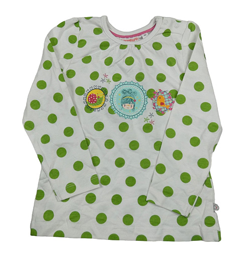 Bílé puntíkaté triko s dívkou a ptáčkem Liegelind