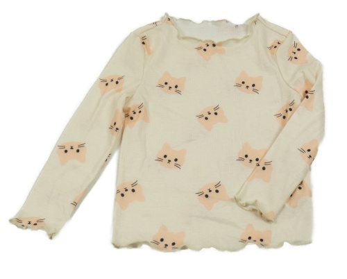 Vanilkové žebrované triko s kočičkami SHEIN