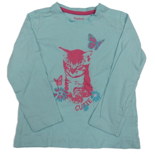 Světlemodré triko s kočičkou a motýlky impidimpi