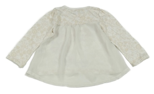 Béžovo-bílé vzorované triko s halenkovým prvkem a nápisy a květy Topomini