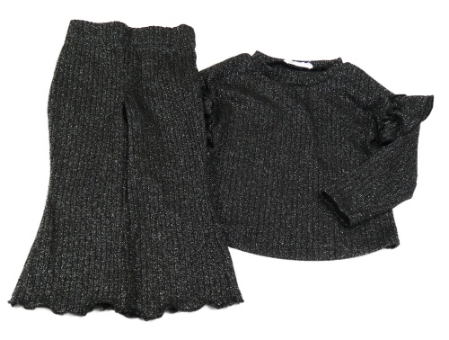 2set - Černé třpytivé pletené triko + flare kalhoty Primark
