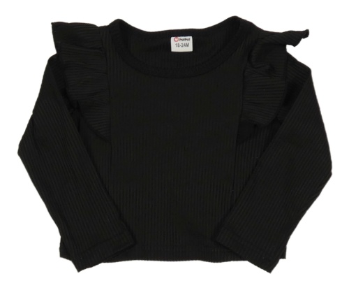 Černé žebrované crop triko s volánky PatPat