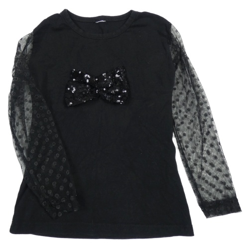 Černé triko s tylovými rukávy a 3D mašlí s flitry