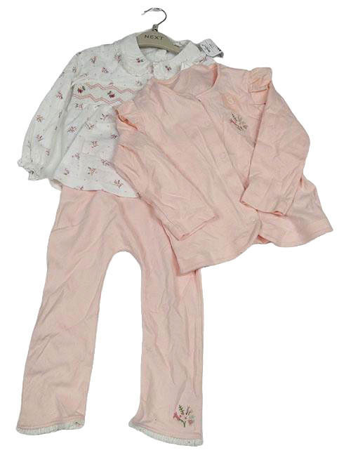 • Nové - 3set - Bílé perforované květované triko s límečkem + světlerůžové legíny + propínací kabátek Next