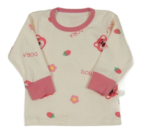 Bílo-korálové triko s medvídky a kytičkami