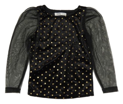 Černé sametové puntíkaté triko s tylovými rukávy Sinsay