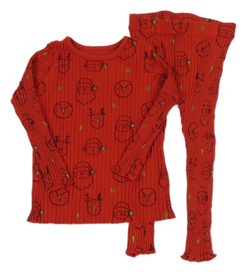 2set - Červené žebrované triko se Santy a zvířaty + legíny George