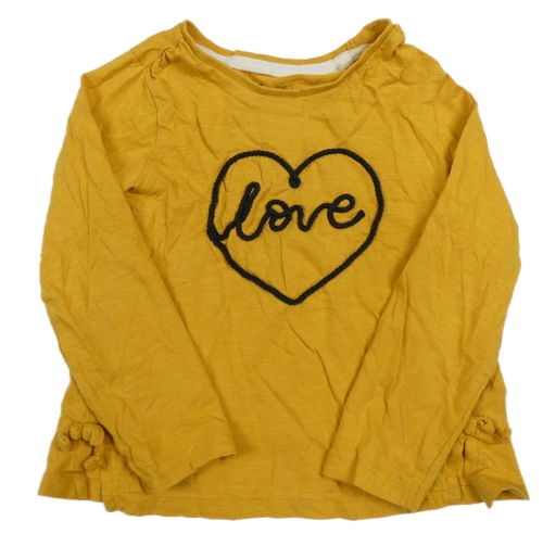 Hořčicové melírované triko se srdíčkem s nápisem a mašličkami Tu