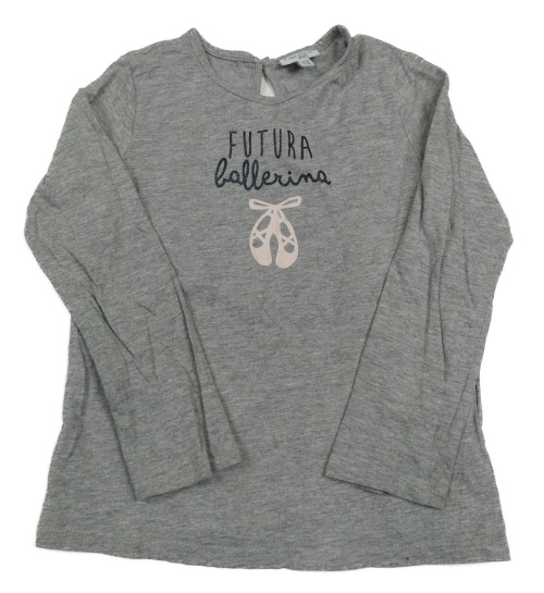 Šedé melírované triko s nápisy a baletními piškoty Fagottino