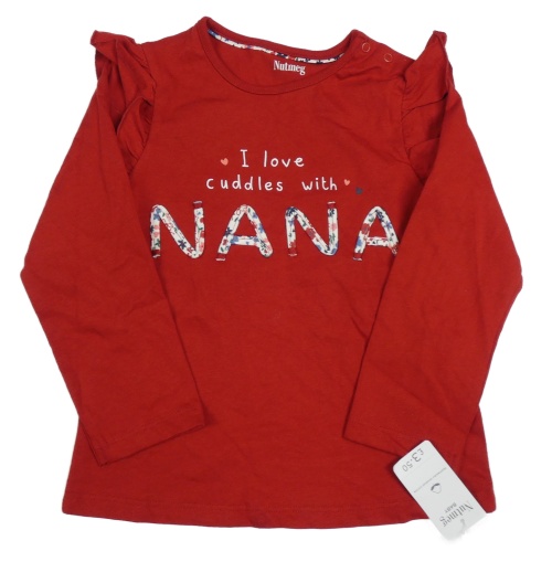 Nové - Červené triko s nápisem a volánky Nutmeg