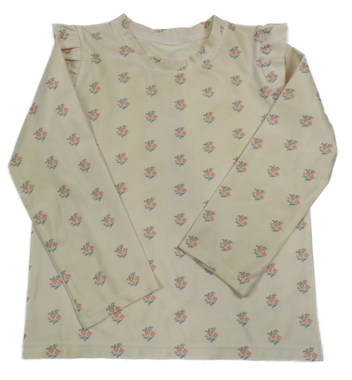 Béžové UV triko s květinami s volány na ramenou