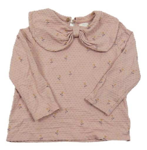 Starorůžové puntíkaté triko s květinami a límečkem Next