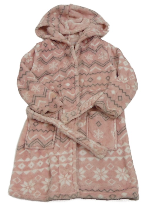 Světlerůžový vzorovaný chlupatý župan s kapucí