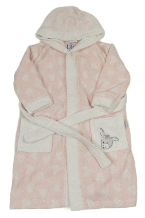 Světlerůžovo-bílý froté župan se srdíčky a kapucí
