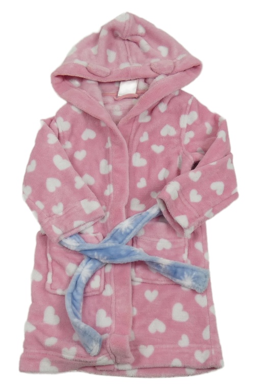 Růžový chlupatý župan se srdíčky a kapucí H&M