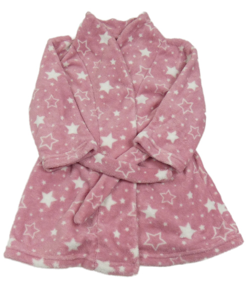 Růžový chlupatý župan s hvězdami