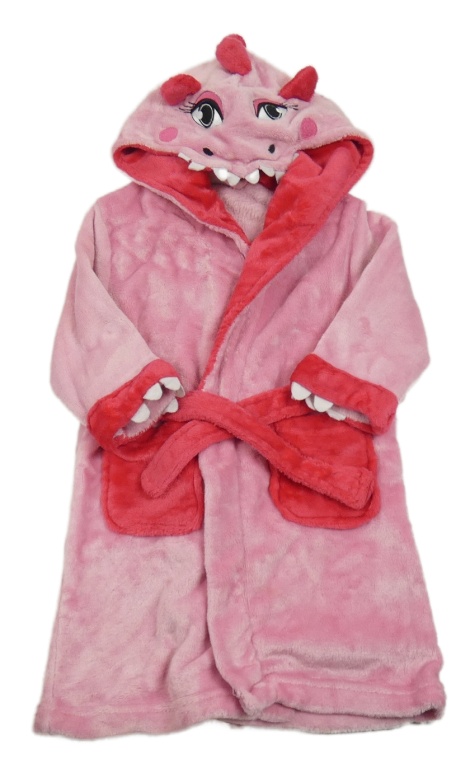 Světlerůžový chlupatý župan s kapucí - dinosaurus