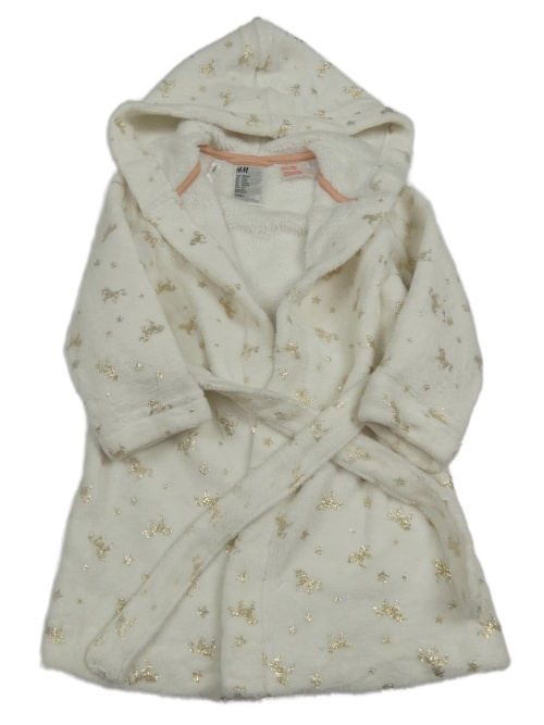 Bílý chlupatý župan s jednorožci a kapucí H&M