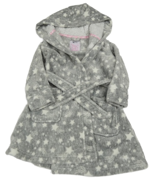 Šedo-bílý plyšový župan s hvězdičkami a kapucí Tu